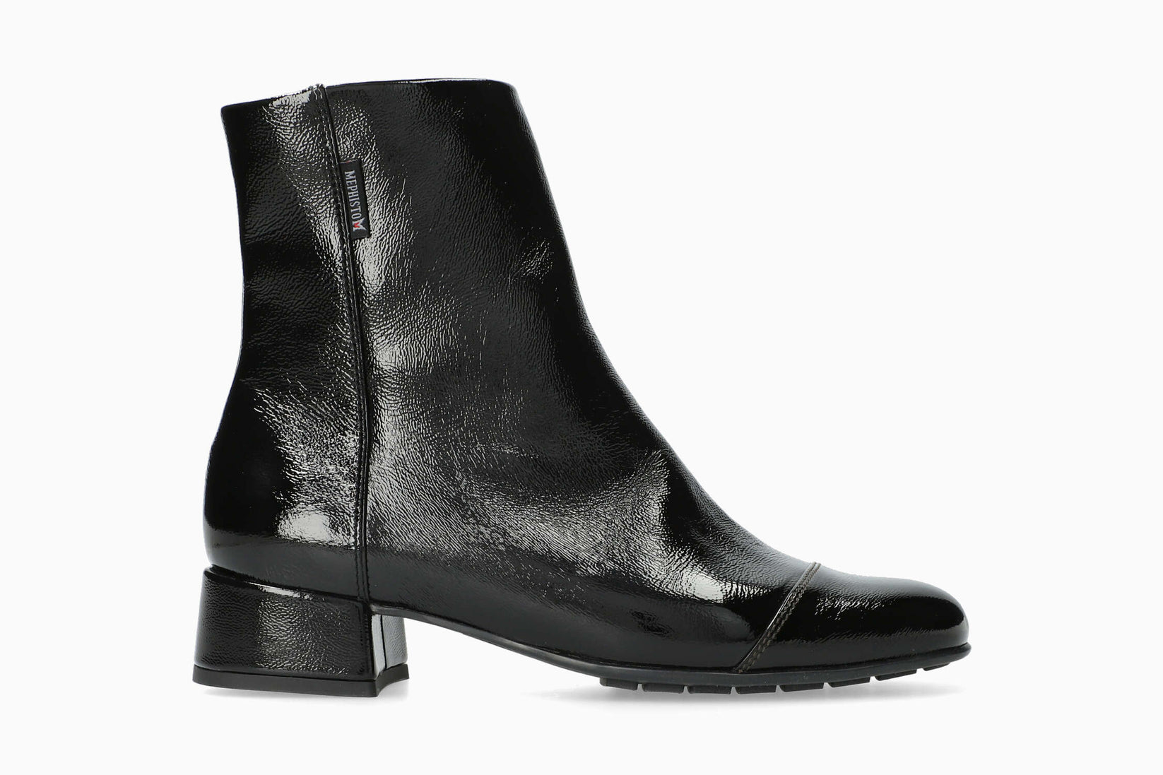 Feminine and elegant, this heeled ankle boot will suit every style and every taste. The removable insole with SOFT-AIR Technology reduces shock to a minimum, for a smooth, fatigue-free walk. This boot is easy to put on thanks to its side zip fastening. The soft, warm lining keeps feet warm. This women's model is made from crinkled patent leather.